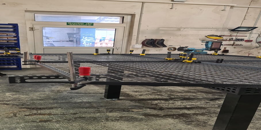 Cadre en équerre et en "T" en acier - grillage en fil d'acier - zingage à chaud - fixation suspendue par tiges filetées M12